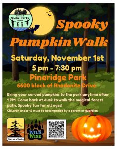 We’re getting ready for our 3rd Annual Spooky Pumpkin Walk on Saturday, November 1st at Pineridge Park – see the poster below!